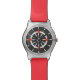 Grafisch afbeelding van de helm van een schip in wit op zwarte achtergrond, met rode stippen op 12, 3, 6 en 9 posities.