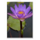 een paarse lotus als een kroon en een kleine groene kikker die op zoek is naar een toevluchtsoord voor de nacht