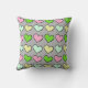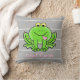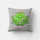 Kute Personalized Pillow, Groene kikker met roos roze harten op middelgrijs, pas met Naam aan, en Initiaal op het hart. De achterkant van de kussen komt overeen met grijs met groen geel en roos harten.