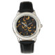Dit kinder horloge is uitgevoerd in roestvrijstaal met een zwart gezicht en zwart lederen bandje met een leuke Halloween vleermuisprint. Pas dit horloge aan of koop het zoals het is.