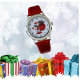 De kinderen in je leven zullen dol zijn op dit rode glinsterende horloge met de kerstman en zijn tas met speelgoed voor de feestdagen!