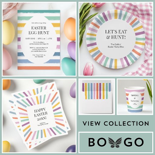 Kinder Schattigee Kleurrijke Happy Easter Egg Modern Striped Holiday Briefkaart heeft een wit eivormig element in het midden, tegen een levendige gestreepte achtergrond in vrolijke paaskleuren zoals geel, groen, roze en paarse. De voorkant toont een grote "HAPPY EASTER" -tekst in het zwart, geschreven in een modern en elegant lettertype. De rug heeft strepen aan de zijkanten, die een helder en feestelijk gevoel toevoegen. Ook is er ruimte op de rug voor een paasgroet. Perfect voor een paaswens voor kinderen, deze kaart is volledig aanpasbaar aan uw evenementdetails. Een aangepaste bestelling nodig? Klik hieronder op de knop "Bericht". Wij helpen u graag.