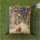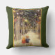 Magisch kerstkussen met twee kinderen die 's nachts in een bos lopen met kerstverlichting die schittert van alle bomen.