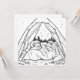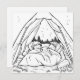 Schattigee kleurplaat met een met een campingthema. Twee kleine kinderen slapen in hun slaapzakken in een tent op de camping.