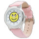 Kind's Happy Face Pink Leather Strap Watch Horloge