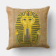 Koning Tutankhamun begrafenismasker op papyrusachtergrond.