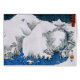 Utagawa Hiroshige (1797 - 12 oktober 1858) was een Japanse ukio-e kunstenaar en een van de laatste grote artiesten in die traditie. Hij is geboren in 1797 en heet "Ando Tokutaro" in de barakken van Yayosu, net ten oosten van het kasteel van Edo in het gebied Yaesu van Edo (cadeau-dag Tokio). Zijn vader was Ando Gen'emon, een erfelijke onderhouder (van de doshin rang) van het geweer. Een ambtenaar van de brandbestrijdingsorganisatie die als taak had Edo Castle te beschermen tegen brand, Gen'emon en zijn familie, samen met 30 andere samurai, woonde in een van de 10 barakken; hoewel hun salaris van 60 koku hen als een minderjarige familie bestempelde, was het een stabiele en zeer gemakkelijke positie — professor Seiichiro Takahashi kenmerkt een brandweerman in zijn functie van openbaring. De 30 samurai-functionarissen van een kazerne, waaronder generaal'emon, hebben toezicht gehouden op de inspanningen van de 300 laaggeplaatste werknemers die ook in de kazerne leefden. Een paar stukjes bewijs geven aan dat hij werd getraind door een andere vuurman die hem geleerd heeft op de door China beïnvloed Kano-school. Volgens de Legende was Hiroshige een ukiyo-e kunstenaar toen hij de prints zag van zijn bijna-hedendaagse Hokusai. (Hokusai publiceerde enkele van zijn grootste prints, zoals zesendertig uitzichten van de berg Fuji, in 1832 - het jaar dat Hiroshige zich voltijds aan zijn kunst wijdde.) Van toen tot de dood van Hokusai in 1849 concurreerden hun landschapswerken voor dezelfde klanten. Triptych met bergen en rivier langs de Kiso Road tijdens een sneeuwstorm in de winter. retro leuke, coole, kleurrijke, unieke creatieve elegante decor natuur landschap spiritueel inspirerend religieus boeddhisme Shin Asian ukiyo-e fine art.