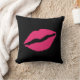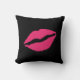 Vet, helder, roze lippen op een zwart achtergrondaccent dit kussen.