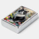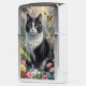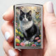 Een zwart-witte kat zit te midden van een levendige tuin met kleurrijke bloemen, met vlinders die eromheen fladderen. De scène baadt in zachte, warme verlichting, waardoor een sprookjesachtige sfeer ontstaat.