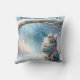 Een schattige kat zit in de sneeuw gewikkeld in een kleurrijk litteken terwijl hij naar de vallende sneeuwvlokken staart