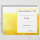 Een stijlvol modern certificaat voor klas kunstprijs met een leuke gele verfspat aquarel afbeelding, perfect voor het aanmoedigen van een jonge kunststudent. Je kunt je eigen details invullen. Een geweldige hulpbron voor elk type klaslokaal leraar.