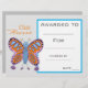 Een stijlvolle prijs voor een modern klassecertificaat met een schattig vlinderdarm afbeelding dat perfect is om een jonge student aan te moedigen. Je kunt in je eigen details schrijven. Een geweldige bron voor elk type klaslokaalleraar.