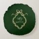 Mooi en klassiek bos groen kerstvakantie kussen beschikt over een elegante gouden kam met boog ontwerp en uw aangepaste naam met traditionele kalligrafie script.
