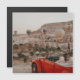 Klassieke Rode auto die warme luchtballonnen in Turkije bekijkt