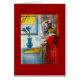 waterverf in heldere kleuren. Een klein meisje in een rode jurk en een bonnetje kijkt naar een vaas van iris die op tafel ligt. Mooie kunst van de Zweedse schilder Carl Larsson.