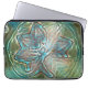 Kleine groene en blauwe bloem op pixeldrizzle text laptop sleeve
