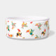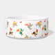 Kleine toucan print op een schattige witte keramische kom voor huisdier voedsel.