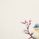Kleine vogels op bloesem boom tak van wit behang