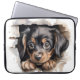 KLEINE ZWARTE EN BRUINE PUPPY HOND DIE OVER HET HE LAPTOP SLEEVE