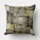 Herfst Color Blocks Vierkant Sierkussen. Prachtige herfstgrijswaarden en groene gevlekte kleurenblokken. Zet het podium voor het seizoen. Bewaar het citaat "Geloof, Hoop, Liefde" of voeg uw eigen zin of monogram toe. Modern, eigentijds patroon.