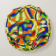 Kleurpatches op gebogen beige stroken rond kussen