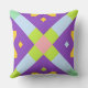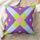 Een helder en levendig geometrisch ontwerp met symmetrische vormen en levendige kleuren, waaronder paarse, groene, gele en blauwe, waardoor een modern en artistiek patroon ontstaat.