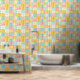 Verfraai de babykamer of slaapkamer van een meisje met dit charmante behang, ontworpen om een vrolijke sfeer te creëren. Dit levendige, pastelkleuren patchworkbehang met een leuk patroon van blauw, geel en roze, zal elke ruimte opfleuren met zijn speelse kleuren en een vrolijke omgeving creëren.
