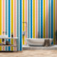 Voeg een vleugje kleur en plezier toe aan elke kamer met onze Peel & Stick Wallpaper met levendige strepen in blauw, blauwgroen, gele mosterd en koraal. Dit levendige kleurenpalet is perfect voor het creëren van speelse en boeiende omgevingen, vooral in kinderkamers of creatieve ruimtes. De heldere en vrolijke strepen inspireren tot verbeelding en brengen energie in elke omgeving, waardoor het een ideale keuze is voor gebieden waar kinder spelen en leren. Gemakkelijk aan te brengen en te verwijderen, is dit behang een fantastische manier om een ruimte met vreugde en creativiteit zonder permanente verplichting in te vullen.
