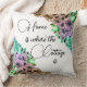 Kleurrijk bloemenpatroon aan elke kant van dit elegante kussen met de uitdrukking "thuis is waar het huisje is" geweldig decor voor een gezellig huis