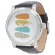 Dit leuke mid-eeuwse geïnspireerde horloge kenmerkt 4 gitaarplukvormen op zwarte lijnen, in turquoise, oranje, tan en goud. Als je op zoek bent naar een stijl om je pols op te hangen - dit is het!