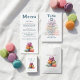 Kleurrijke leuke macarons bruiloft Details Informatiekaartje