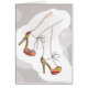 Leuke, retro stijl illustratie van vrouwelijke benen met leuke, meerkleurige gestreepte hoge hakken op een grijze achtergrond. Meisjesachtig, trendy abstract ontwerp voor mode liefhebbers.