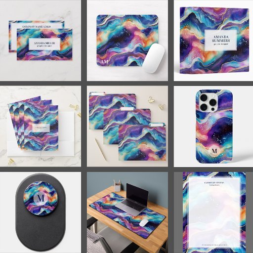 Esthetische, kleurrijke rainbow agate glitter textuur met een optioneel monogram.