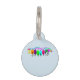 Meerkleurige rups aan de voorzijde van een lichtblauw label. U kunt personaliseren met de naam van uw hond onder de rups en andere informatie op de achterkant.
