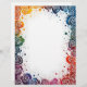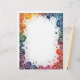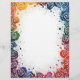 Kleurrijk en uitbundig, dit briefhoofd heeft splatterpant in geel, groen, blauw en sinaasappel, met witte wervelingen, rond een grote centrale ruimte. Perfect voor casual correspondentie, kunstzinnige nieuwsbrieven en leuke uitnodigingen.