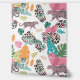 Een kleurrijk wild dieren ontwerp met een tijger, leeuw en een luipaard in roze en blauwgroen kleurtinten. Bijpassende kleurrijke tropische bladeren en kleurrijke luipaardvlekken zijn in dit ontwerp te zien om een chique look te creëer. Moderne kunst met schattige dieren en tropisch groen.