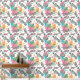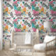 Kleurrijke wilde dieren en tropische bladeren patr behang