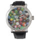 Dit horloge heeft een afbeelding van knikkers.