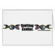 Merchandise met dubbele DNA-helix met de zinsnede "Knitting Genius" in het midden.