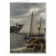 Een afbeelding van een zeilboot in Halifax Harbour met een geknoopt touw op de voorgrond.