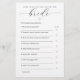 Test how well guests know the bride-to-be with this stylish bridal shower game card. Featuring a minimalist design with soft blush accents and elegant typography, this two-sided activity prompts fun, lighthearted answers that spark conversation and laughter. A perfect icebreaker and keepsake for modern or neutral-themed showers. Coordinates with the full Minimal Modern Bridal Shower | The Future Mrs. collection.