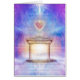 Mooie pastelkleuren van magenta en cyaan en gele mystieke achtergrond met tempel en hart boven. Temple staat in de tekst "Ken Thy Heart". Door Daniel B. Holeman