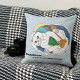 Knus Witte Kat Wasmand Grappig Blauw Kussen
