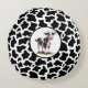 Dit werpkussen wordt getoond met een leuke zwart-witte koe print. Pas dit object aan of koop zoals getoond. voorraad afbeelding