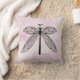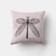 Katoen gooien kussen met een mooie libellen met open vleugels tegen de roze achtergrond van de waterverf. Geweldig entomologieontwerp voor wetenschappers die geïnteresseerd zijn in insecten, natuur en goblincore-stijl.