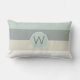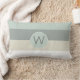 Een koel en kalmerend kleurenpalet van stoffig blauw, middelgrijs, flauw grijs en wit voegt minimalistische aantrekkingskracht toe aan uw woonruimte. Een rond passend lijst omringt een groot monogram dat u met uw gewenst initiaal kunt uitgeven. Als u de kussen zonder het monogram verkiest, kunt u dit punt aanpassen en het ronde lijst en de tekst schrappen.