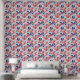 Dit naadloze motief is voorzien van rood-oranje koi-vissen met delicate witte contouren, elegant zwemmend tussen donkerblauwe bloemenelementen in een serene vijver afgebeeld in wit en lichtblauw. Geïnspireerd door Japanse kunst, vangt het ontwerp de rustige schoonheid van een traditionele koi vijver scene, het mengen van natuurlijke motieven met artistieke gratie.