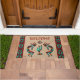 Pas dit unieke 'Een van een soort' Southwest Kokopelli Doormat aan! Het is voorzien van een twee Kokopelli die de Flute en Dansend rond een Cactus onder de zon op een Tan achtergrond... omringd door een zuidwestgrens in Turquoise, Oranje en zwart. Dit is een origineel kunstontwerp van artiest Kerry Miller.