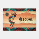 Pas dit unieke 'Een van een soort' Southwest Doormat aan! Het is voorzien van een Kokopelli die de Flute en Dansend onder de zon in de woestijn speelt....on a Southwest Background in Turquoise, Oranje & Black! Dit is een origineel 'Een van de soorten' Kunstontwerp van artistieke Kerry Miller.