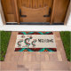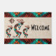 Pas dit unieke 'Een van een soort' Southwest Kokopelli Doormat aan! Het is voorzien van een drie Kokopelli die de Flute en Dansend onder de Zon op een Tan Sandstone-achtergrond speelt... omringd door een zuidwestgrens in Turquoise, Oranje en zwart. Dit is een origineel kunstontwerp van artiest Kerry Miller.
